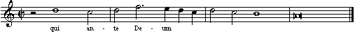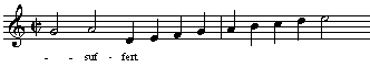 - Uma semínima pode portar uma sílaba somente se ela seguir uma mínima pontuada e for seguida por uma mínima ou nota de valor maior. Por exemplo: