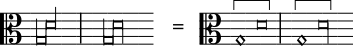 - Uma haste ascendente no lado esquerdo da nota torna esta nota e as notas seguintes semibreves.