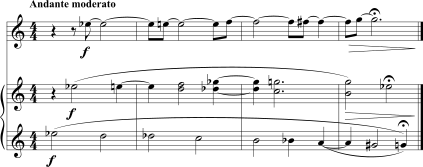 O Exemplo 5-1 mostra uma progressão cadencial conduzindo para os Lás em oitavas no compasso final do primeiro movimento da Serenade in A.