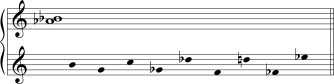 Quando escrita como uma escala, a coleção hexatônica alterna 1 e 3 (comparar com as escalas octatônicas que alternam 1 e 2) (Exemplo 5-22).