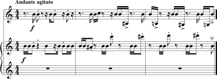 O Exemplo 5-2 mostra os acordes cadenciais estrondosos que concluem o primeiro movimento da Symphony in C de Stravinsky.