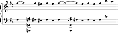 Observe-se que a abordagem ao Lá não dá nenhuma pista de progressão V-I e que há pouco senso de Lá como nota da tônica ou de tríade da tônica de uma tonalidade. O baixo percorre o seu caminho do Fá (compasso 77) ao Ré (compasso 80) e então salta para o Lá (uma quarta justa abaixo). A parte superior equilibra-o simetricamente, terminando com um salto de Mi para Lá (uma quarta justa acima). Há uma convergência local relacionada para o Lá nos compassos 80-81, de Si e Sol (um tom acima e abaixo). Em uma passagem com poucas tríades e sem harmonia funcional, o Lá é estabelecido como nota cêntrica primariamente através de convergência inversiva. Este movimento é "em Lá", mas não "em Lá maior" ou " em Lá menor"; melhor ainda, é em Lá, em torno de Lá, provendo uma variedade de contextos para o Lá.