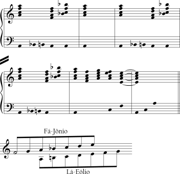 | DIA3 | Dó Eólio, Ré Lócrio, Mi Jônio, Fá Dório, Sol Frígio, Lá Lídio, Si Mixolídio |